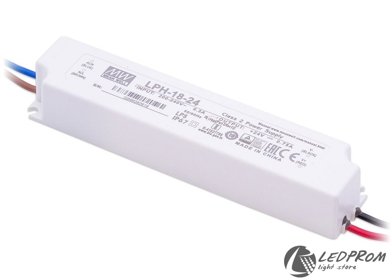 Герметичний, імпульсний блок живлення, високої якості та невеликого розміру. Вхідний діапазон напруги 180~264V АС. Вага 175 грам.