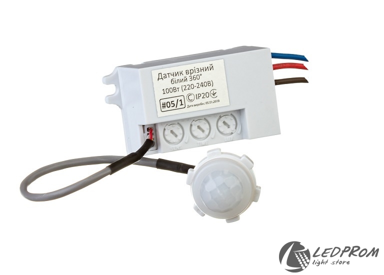 Датчик руху V-100-360 дозволяє ефективно розпоряджатися системою освітлення. Даний датчик фіксує інфрачервоне випромінювання у своїй зоні дії і може включати та відключати підключене до нього освітлення. Датчик має 180 ° огляду. Велика відмінність від інших датчиків руху це те, що має невеликий розмір і монтаж проводиться врізанням і кріпленням його на поверхні стіни або стелі.
