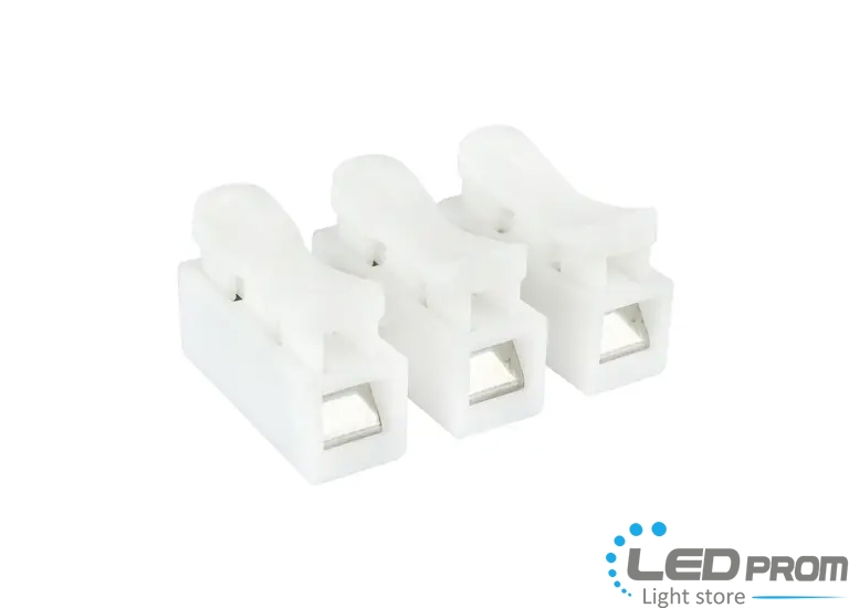 Плоскоружинний з'єднувач цієї 3-провідної клеми розрахований на підключення освітлювальних пристроїв.