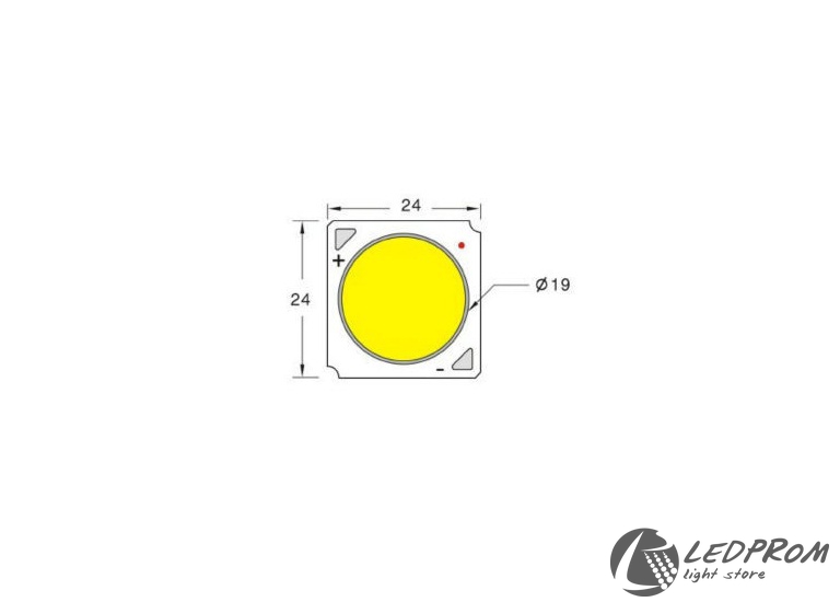 У цього потужного світлодіода з підкладкою характеристики потужності – 47Вт, світлового потоку – від 3000 до 5000Лм, кольором світіння є білий.