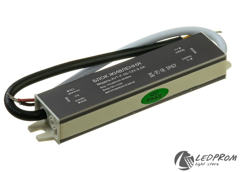 Sealed power supply in a metal case, the advantages of which are the price and relatively small size.