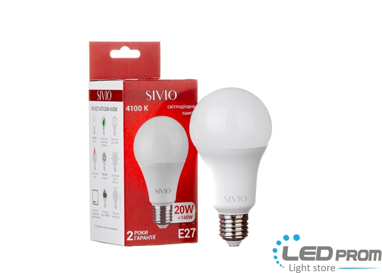LED lamp A-70 20W SIVIO is a modern replacement for obsolete incandescent and fluorescent lamps. The energy consumption of this lamp is approximately 10 times less than that of an alternative incandescent lamp. Also, LED lamps do not contain mercury, which means they do not require disposal. Also on this lamp is protected against power surges. The lamp has a special driver that prevents flickering of the lamp and protects the eyes from excessive flickering.