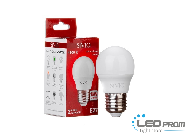 The G-45 10W SIVIO LED lamp is a modern replacement for outdated incandescent and fluorescent lamps. The energy consumption of this lamp is approximately 10 times less than that of an alternative incandescent lamp. Also, the LED lamp does not contain mercury and other harmful substances, which means it does not require disposal. This lamp has surge protection. It also has a special driver that prevents flickering of the lamp and protects the eyes from excessive flickering.