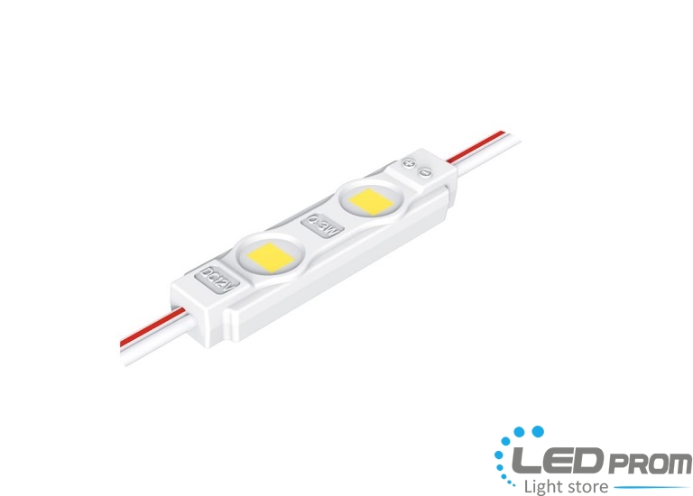 The SMD 2835 Mini 2 LED module is applicable for small letters and complex shapes with a depth of 30-90mm. With the help of two diodes, a luminous flux of 25 lm is achieved. This module is mounted on a double-sided adhesive tape already on the module.