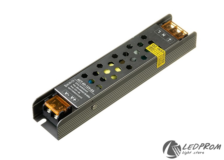 AVT 60-12V - блок питания стабилизированный по напряжению. Используется в основном для подключения светодиодной ленты. Является бюджетным блоком питания в металлическом перфорированном корпусе. Имеет ряд защиты, от короткого замыкания, перегрузки и перенапряжения. Обладает относительно небольшим размером.