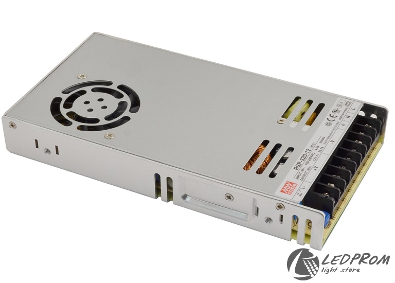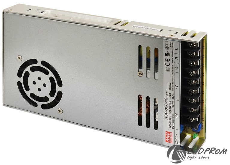 Данный блок питания преобразовывает 220V в 12V, сила выходного тока 26.7А, устройство надежно защищено негерметичным металлическим корпусом.