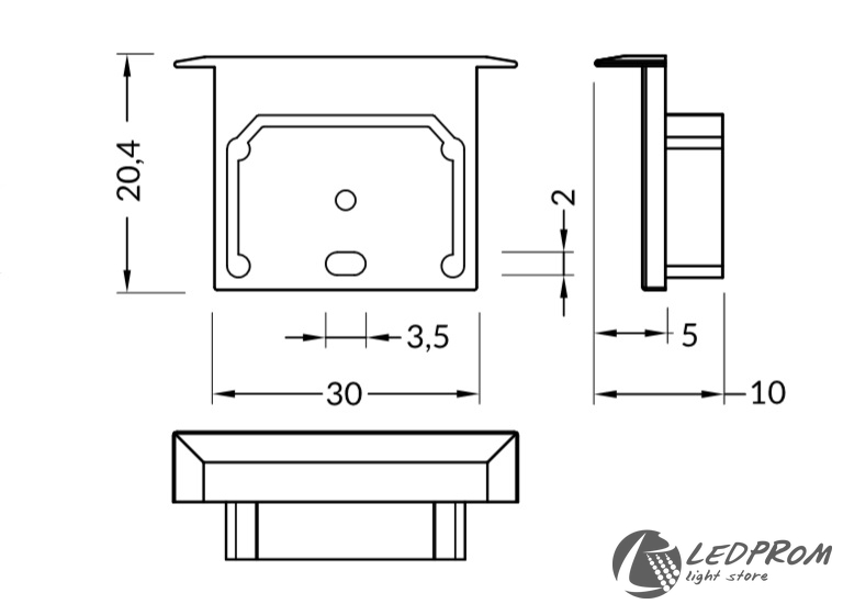 Рекомендуем приобрести эту торцевую заглушку в комплект к алюминиевому профилю LINE-IN20