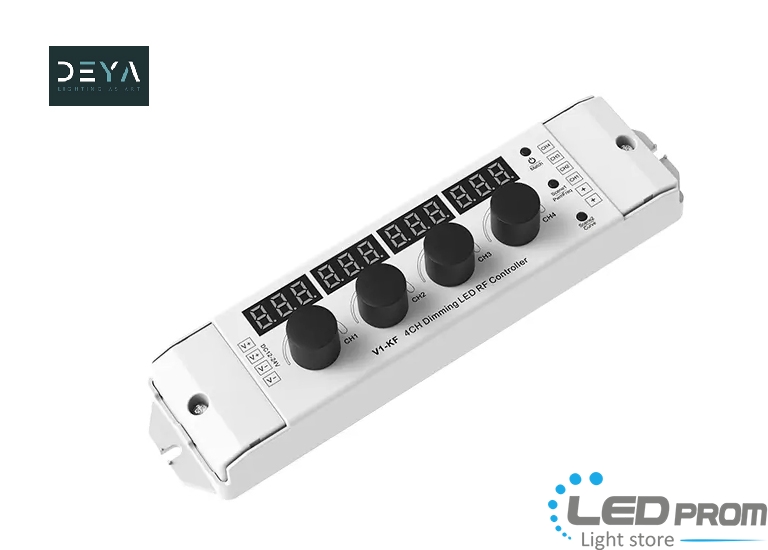 4-канальный светодиодный радиочастотный контроллер с постоянным напряжением диммирования, также может использоваться в качестве радиочастотного пульта дистанционного управления с 4-зонным диммированием