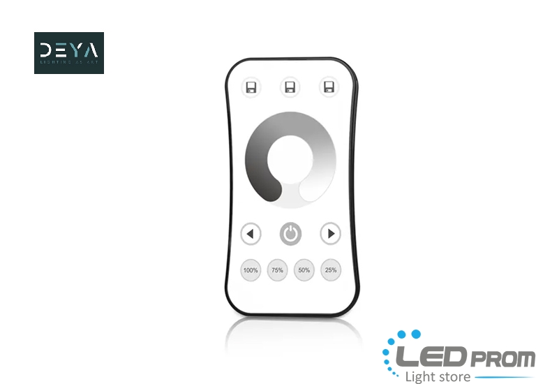 Пульт DEYA DR6-1 - 1-зонный пульт управления (RF). 2.4Ghz беспроводной технологии, дистанционное расстояние до 30 м. Применяется к одноцветному светодиодному контроллеру, диммирующему драйверу или умной лампе.