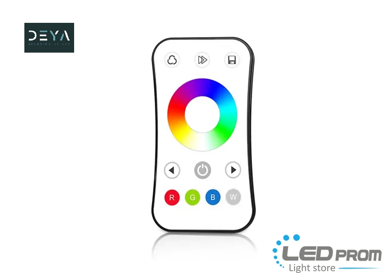 Пульт DEYA DR8-1 - 1-зонный пульт управления (RF). 2.4Ghz беспроводной технологии, дистанционное расстояние до 30 м. Применяется к контроллеру светодиодов RGB или RGBW, диммирующему драйверу или умной лампе.