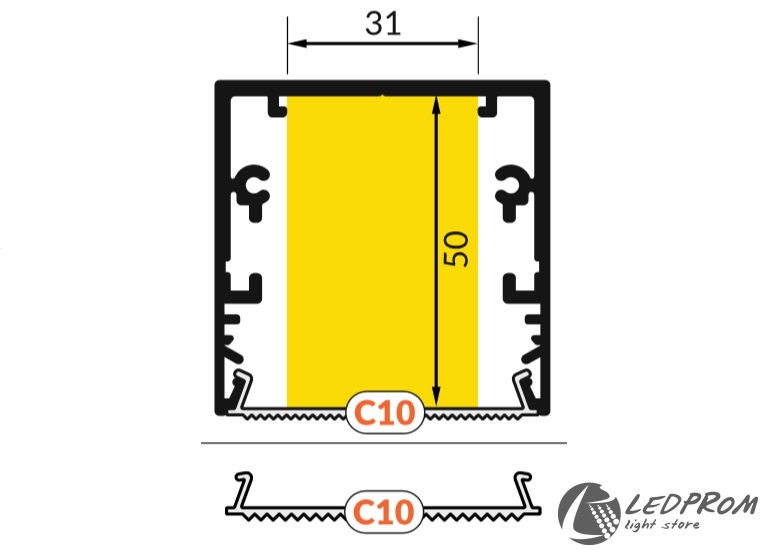 Светодиодный профиль PHIL-53 (53х53mm)