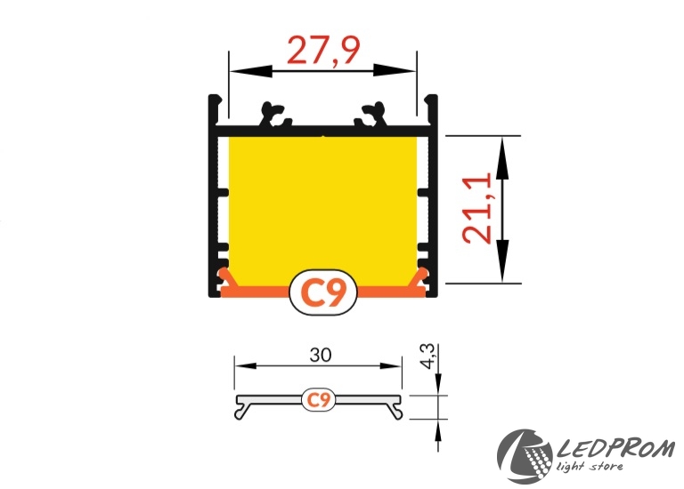 Светодиодный профиль VARIO 30-02 (33.4х29.6mm)